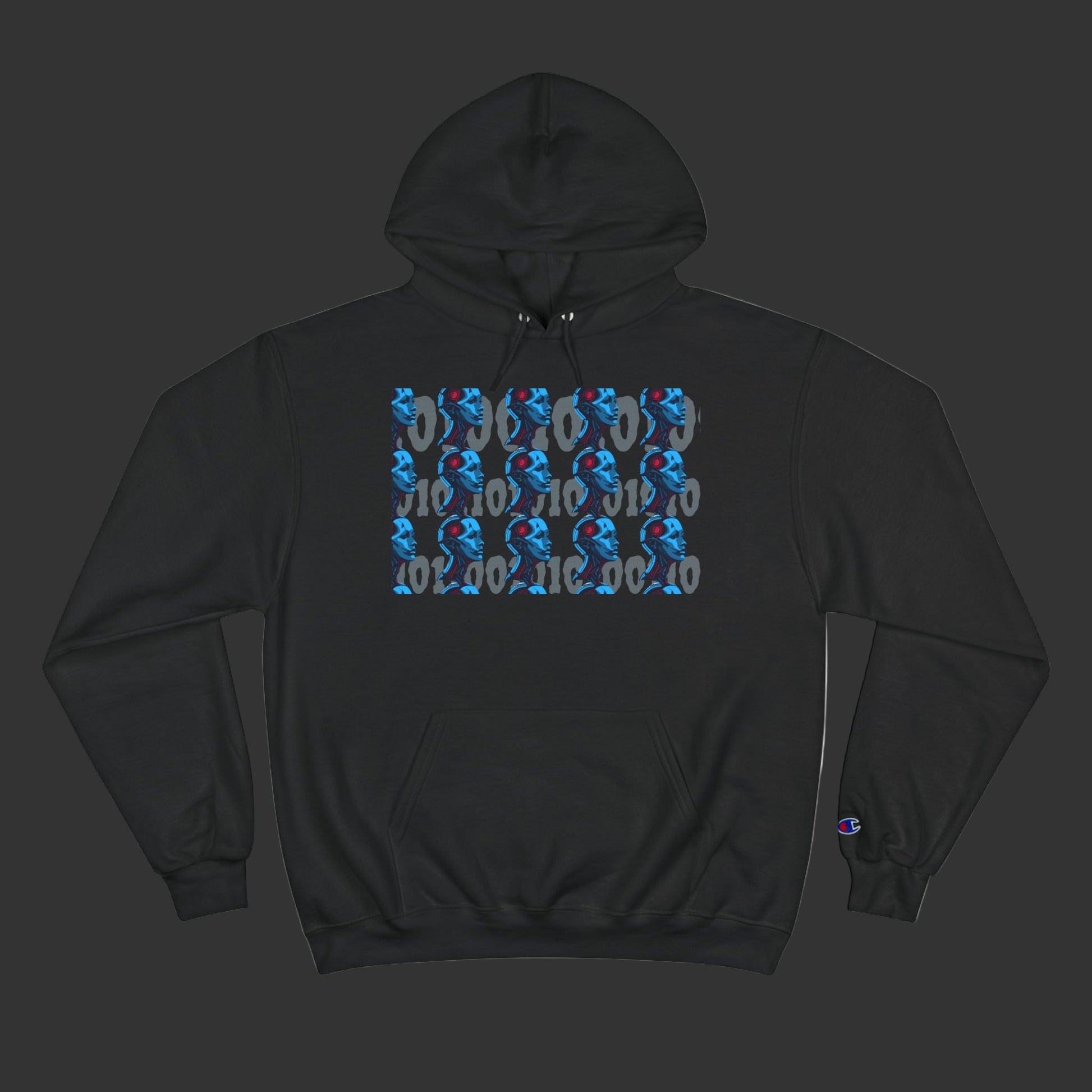 NoReturnApparel x Champion hoodie. Double Dry® tech, eco-friendly fleece, iconic sleeve logo. Stay warm while embracing the void.