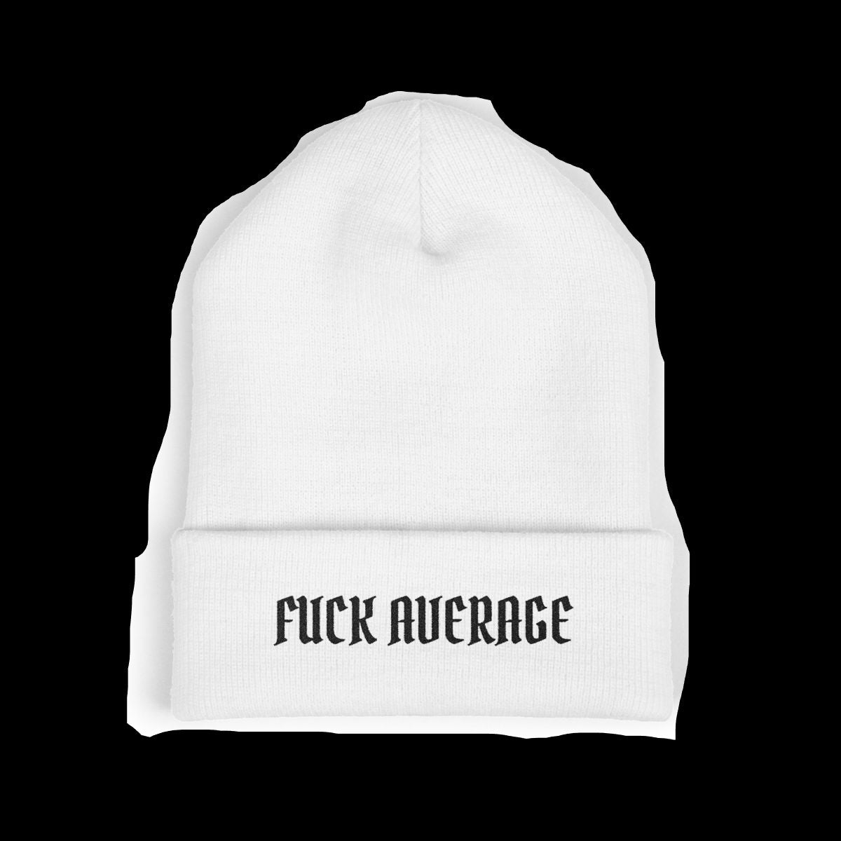 "FUCK AVERAGE" Embroidered Beanie | White Cuffed Knit Winter Cap