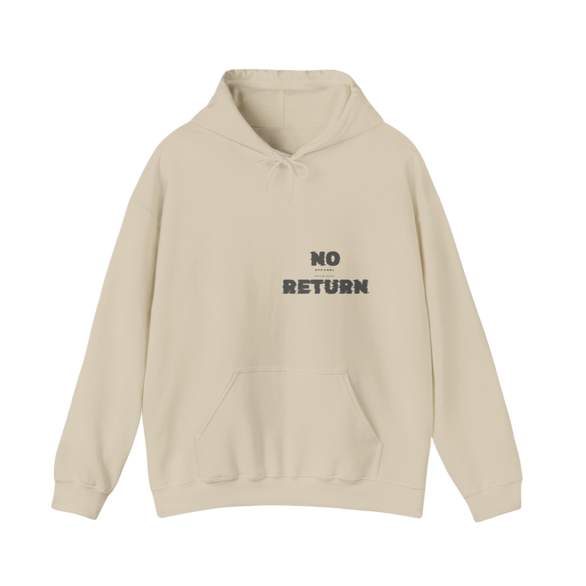 This cozy, resilient hoodie carries a quiet strength — built for anyone shaped more by storms than sunlight. The exterior feels soft and warm, while the structure is strong enough for everyday wear. A small, bold “NO RETURN” on the front grounds the piece in raw honesty.
