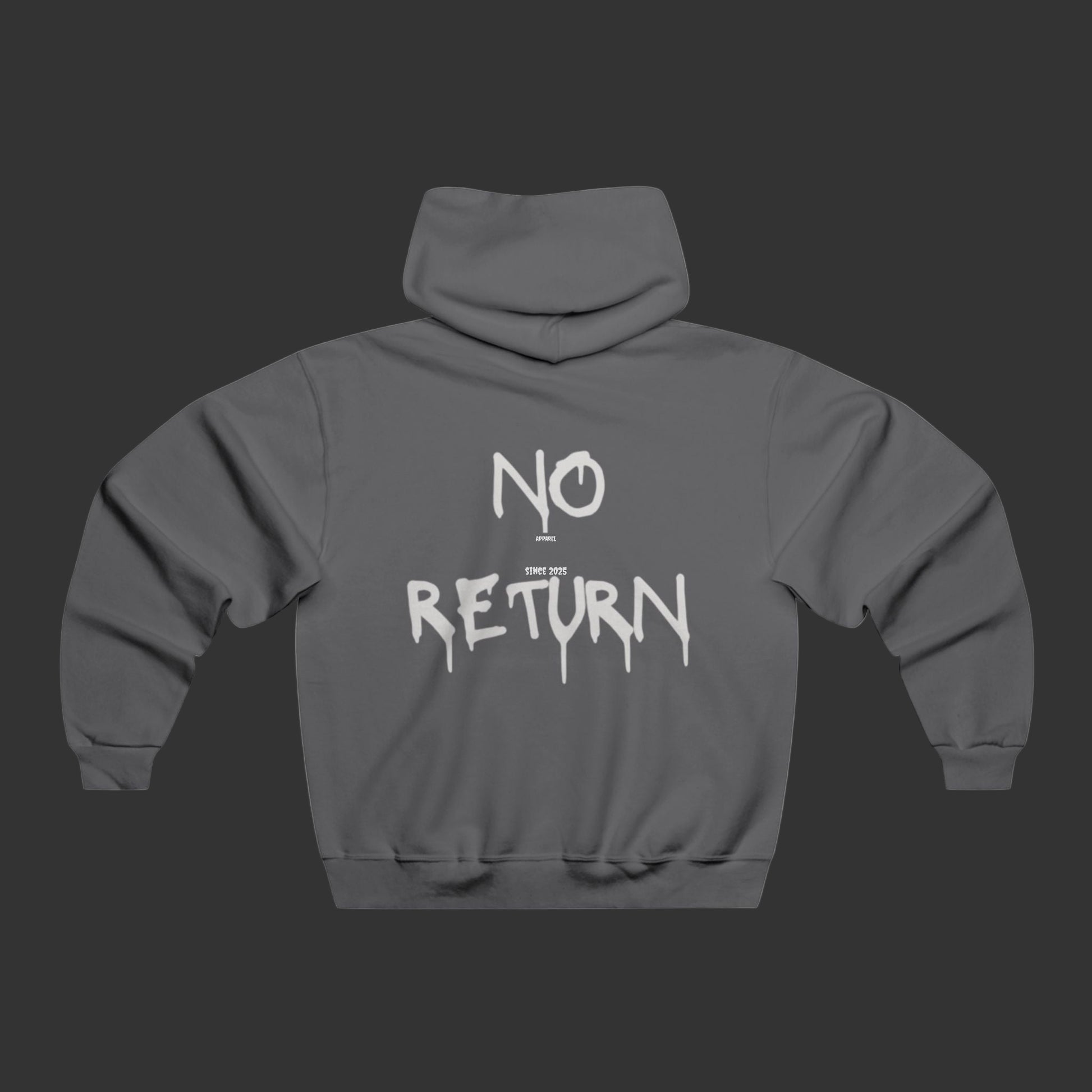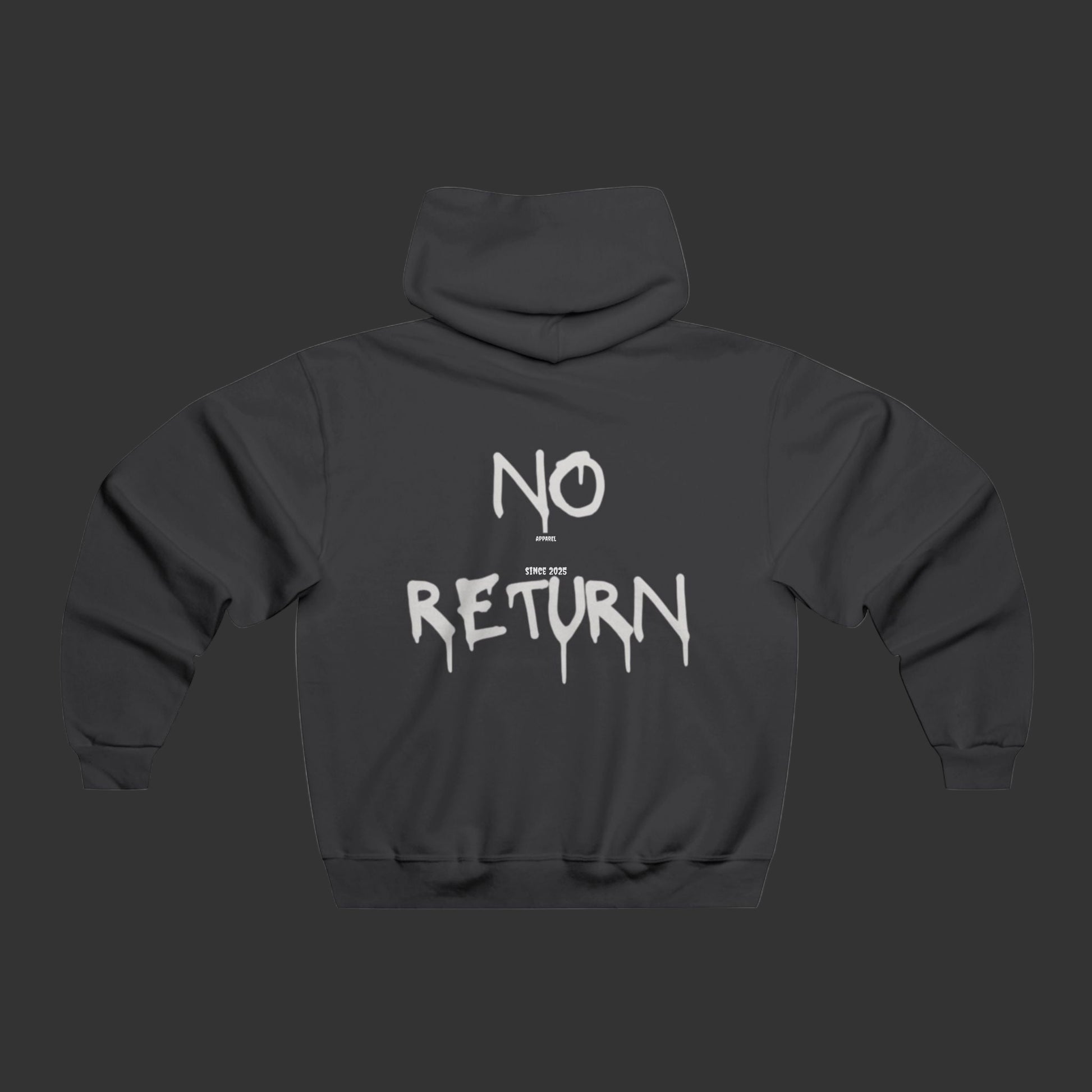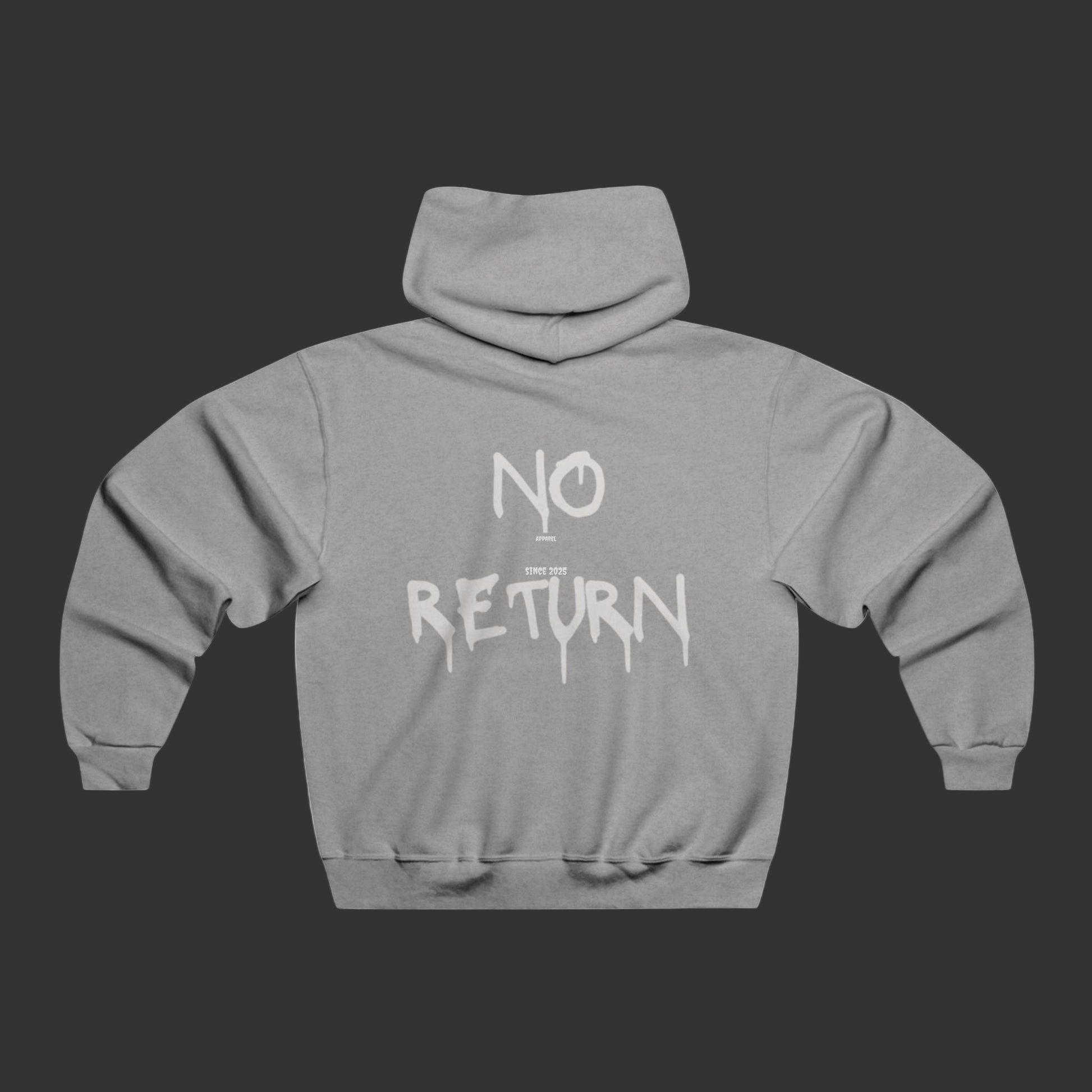 NoReturnApparel washed fleece hoodie. Classic fit, vintage finish, custom cut. Built for comfort, worn for the mood. One way. No return.