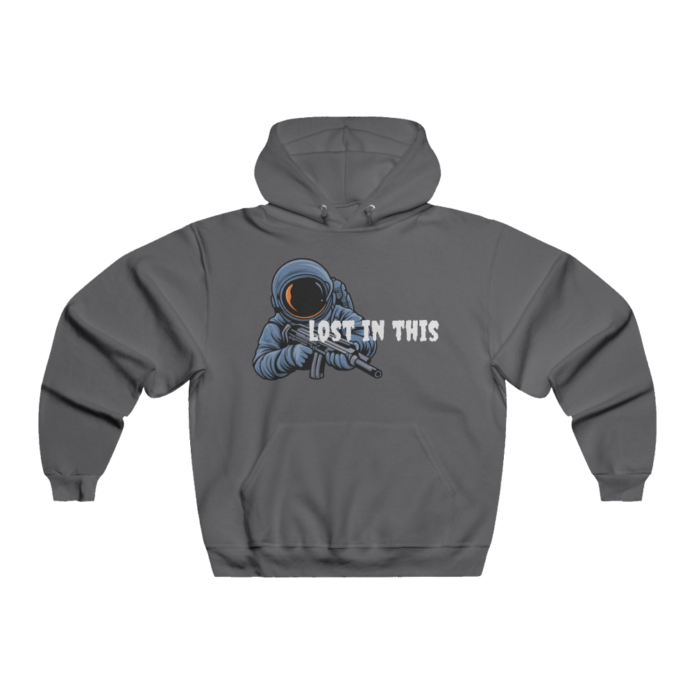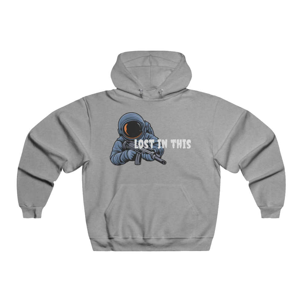 This hoodie captures that zone-out state where the world fades and the mission becomes everything. Astronaut locked in, visor dark, weapon ready — focus only.