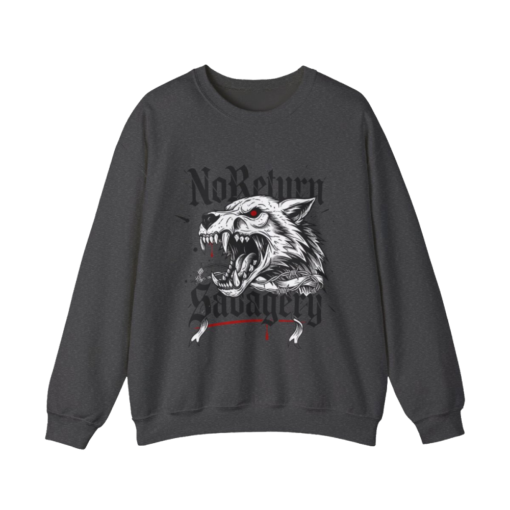 No Return Savagery Wolf Crewneck | Gothic Streetwear | Aggressive Animal Design