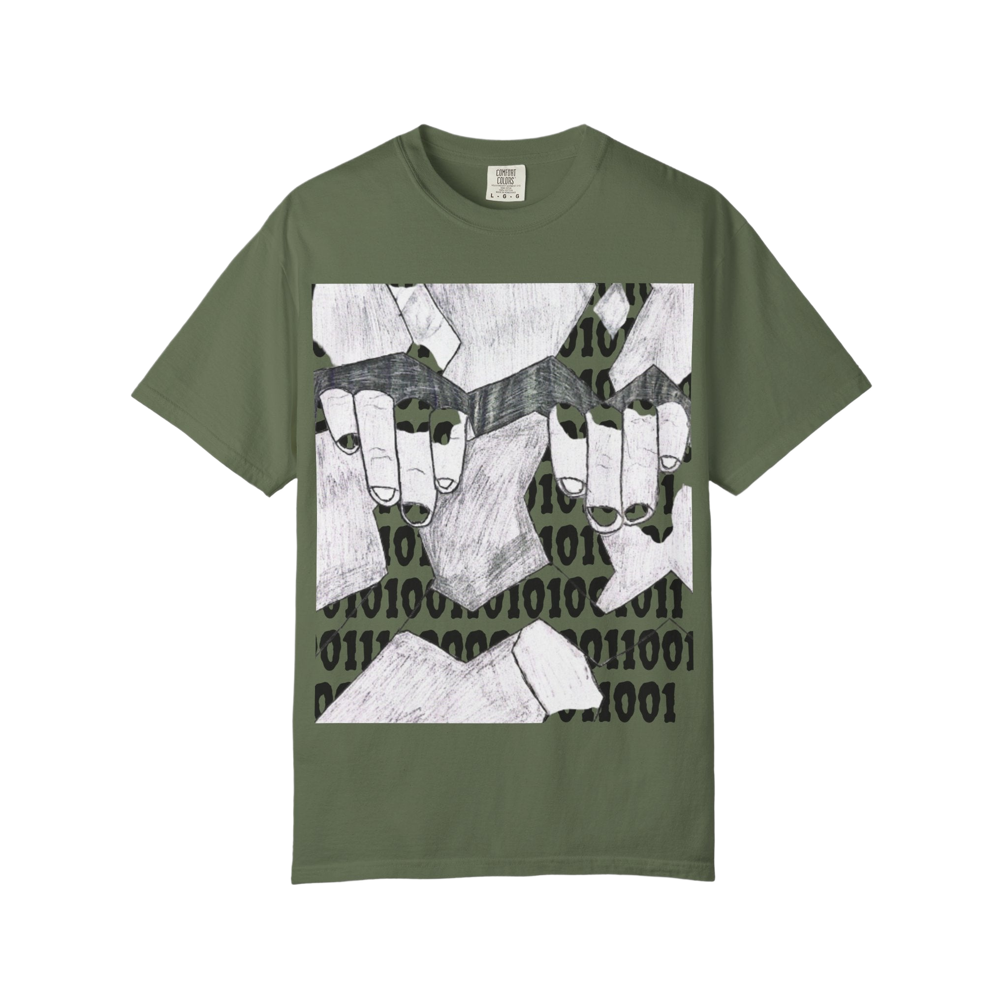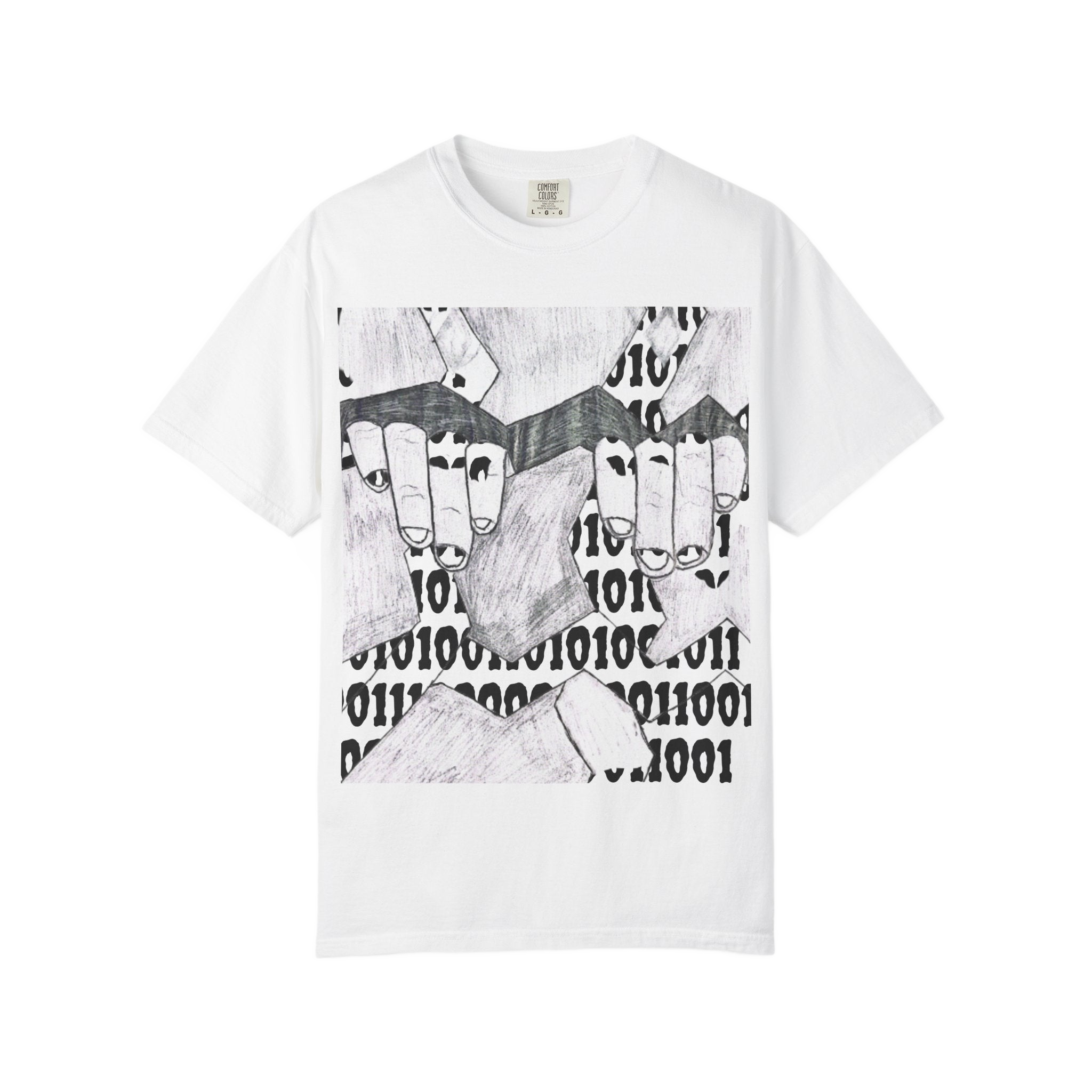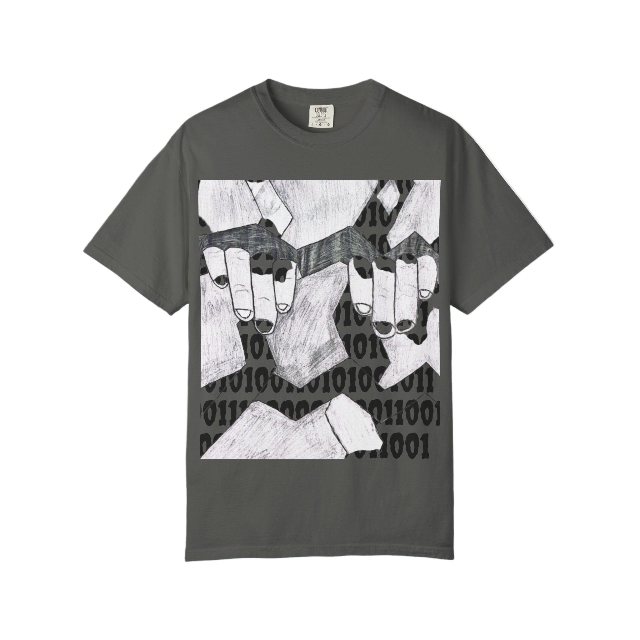 Description You weren’t made to be controlled. This tee features a hand-drawn illustration of puppeteer hands pulling strings over smaller hands, layered over binary code — a visual reminder that the world will try to program you , shape you, and move you how it wants.