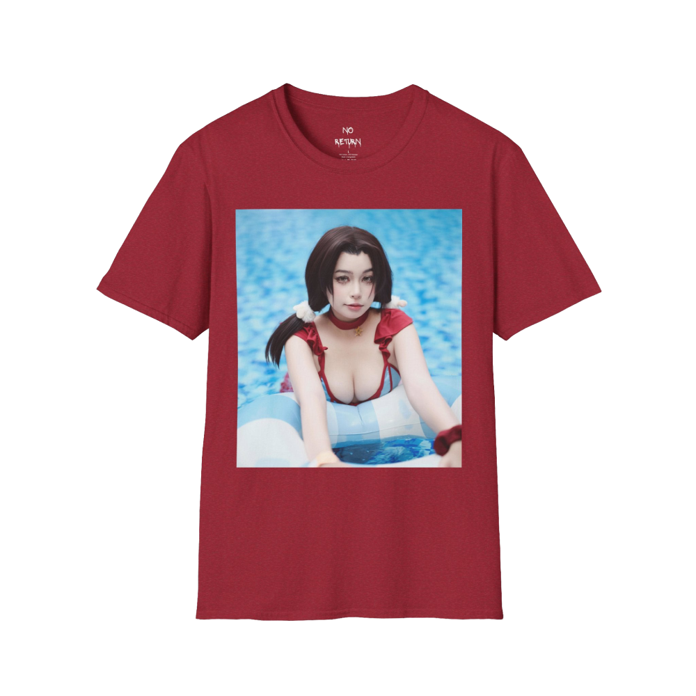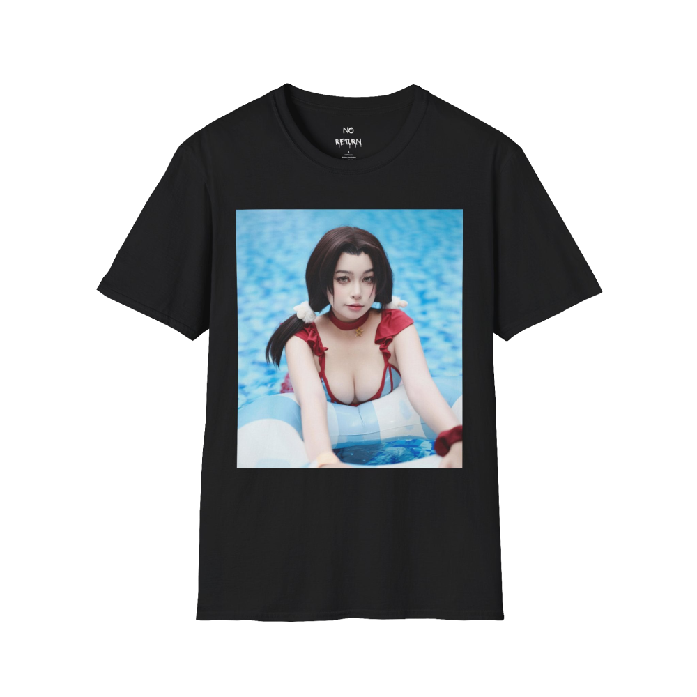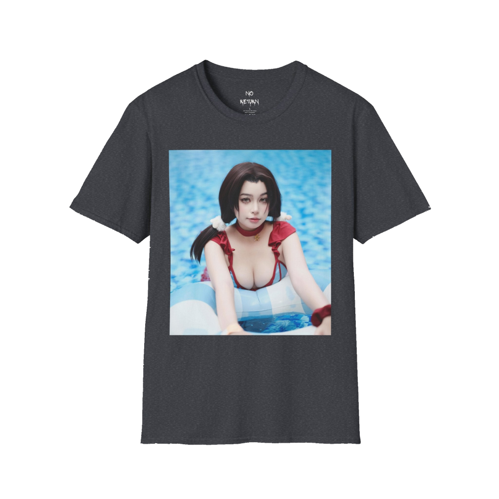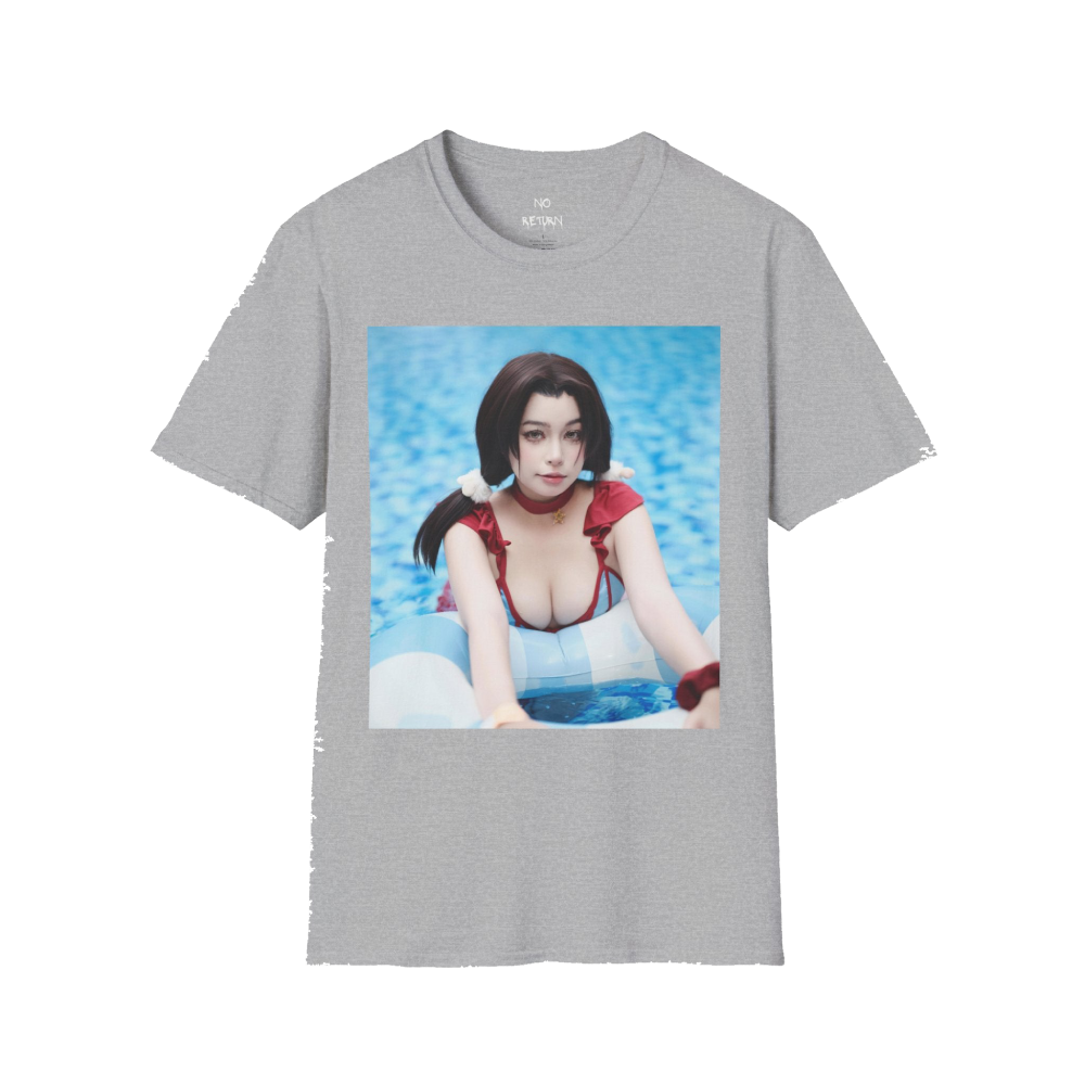 This tee features a cosplay-inspired character portrait , centered on that soft but powerful expression — water behind her, posture relaxed, eyes clear like she already knows the outcome.